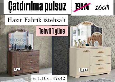 Qeyd: Şəkillərdə həmçinin güzgülü komod ölçüsü en 1.10 x 1.47 x 42 göstərilir.
