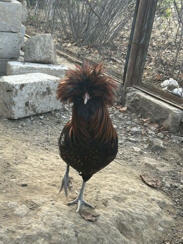 Toyuqçuluq üçün xoruz - Növ: ehtimalən yerli/Asil tipli uzunboy xoruz - Rəng: qırmızı-qəhvəyi bədən, qara-yaşıl quyruq lələkləri, ağ lələk ləkələri - Xüsusiyyətlər: hündür və yığcam bədən quruluşu...