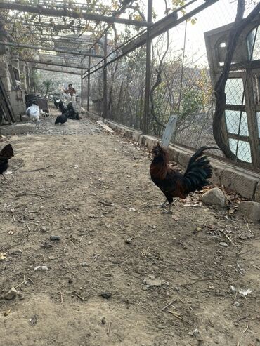 Məhsul: Qara-qırmızı rəngli döyüş tipli xoruz Təsvir: - Uzunboyun, güclü bədən quruluşu, hündür ayaqlar - Lələk rəngi: qara əsas, kürək və boyun hissəsində qırmızı-qızılı tonlar - Quyruq lələkləri...