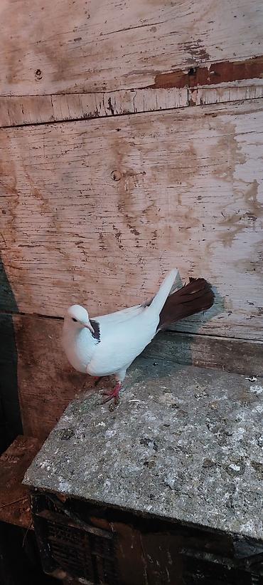 Məhsul: Qırmızı rəngli ayaqları tüklü yerli/şou tipi göyərçin Təsvir: - Rəng: tünd qırmızı (şokolad tonlarında), boyun nahiyəsində yaşıl-bənövşəyi parıltı - Baş və dimdik: kiçik dimdik, başda yüng...