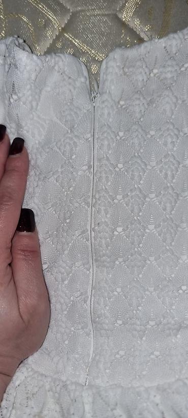 Ağ rəngli qız uşağı üçün ziyafət/libas paltarı - Rəng: ağ, krujeva və tül detalları ilə - Üst hissə: toxumalı parça, dairəvi yaxa - Çiyinlər: transparan tül “off-shoulder” effekti yaradan krujeva ...