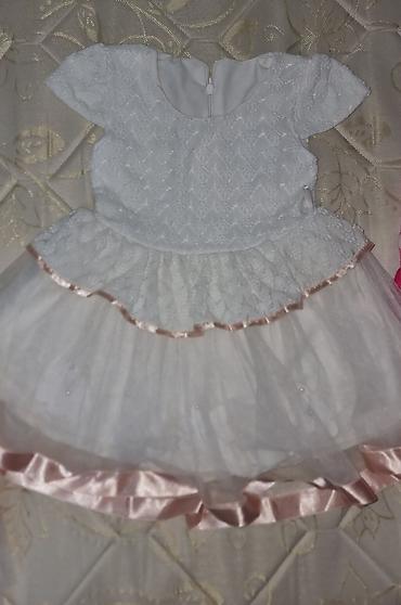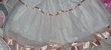 Qız uşağı üçün zərif ziyafət dəsti 1 dəfə toya geyinib - Rəng: ağ, qızılı bəzəkli - Dəst: qısaqol ziyafət donu + ağ süni kürk bolero - Materiallar: atlas əsas, üstündə tül; qızılı krujeva naxışla...