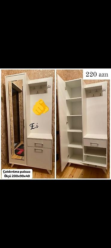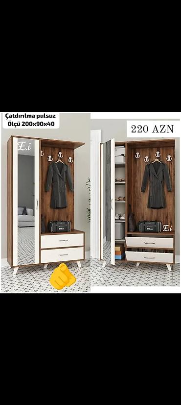 Dəhliz üçün çoxfunksiyalı mebel dəsti Ölçü: 200×160×40 sm Qiymət: 300₼ Çatdırılma: şəhər daxilində ödənişsiz Rəng seçimi: sərbəst Tərkibi və xüsusiyyətlər: - Geniş ikili qapılı şkaf (asılqa...