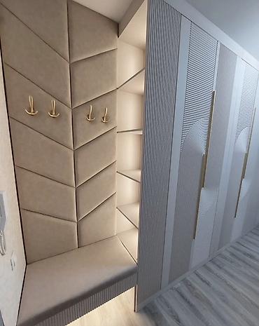 - Yumşaq oturacaqlı giriş guşəsi – arxa hissə dekorativ, yastıqlı panellərlə; aşağı hissədə gizli işıqlandırma.