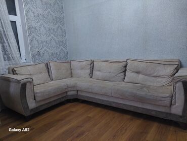 Mebel: Üçnəfərlik divan - Rəng variantları: qəhvəyi və boz - Parça: yumşaq məxməri toxuma, şaquli tikiş detallar - Dizayn: enli oturacaq və bel hissəsi, qollarda qızılı dekor elementləri - Ayaqlar...