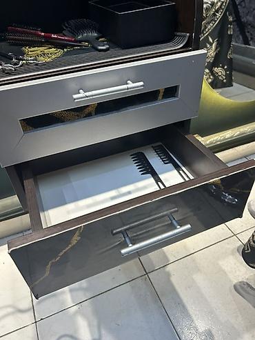 - Çekmecələr səliqəli saxlama üçün dərin və həcmlidir; daraq, qayçı, trimmer, aksesuar və kosmetik vasitələrin yerləşdirilməsinə uyğundur