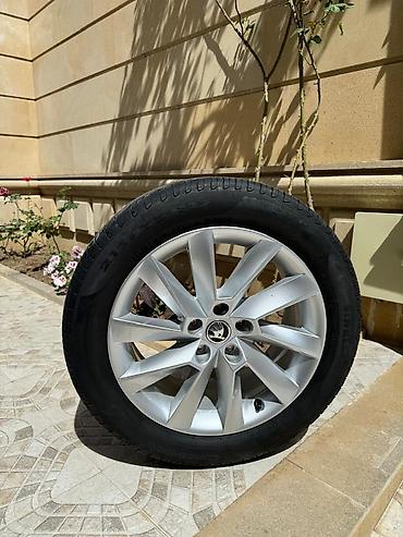 alüminium yüngül lehimli disk, çoxşaxəli (multi-spoke) dizayn, gümüş rəng. 5 bolt deşikli. Ortada Skoda loqolu qapaq.