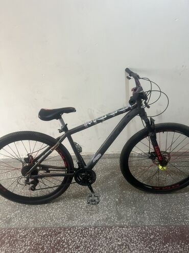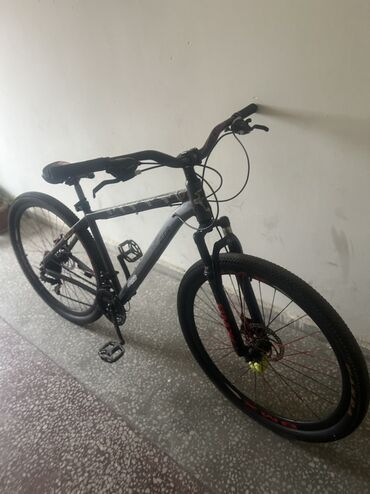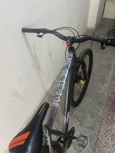 Tünd boz rəngli dağ velosipedi, disk əyləcləri və süspansiyon çəngəlləri ilə təchiz olunmuşdur. Qara rəngli knobby təkərlər müxtəlif ərazilərdə yaxşı tutuş təmin edir. Oturacaq narıncı detallarla qara rəngdədir. Təkərlərdə və digər hissələrdə qırmızı vurğular mövcuddur. Çoxsürətli ötürücü sistemi və düz sükanlı dizaynı ilə bu velosiped həm şəhər içi, həm də yüngül off-road səfərləri üçün uyğundur.