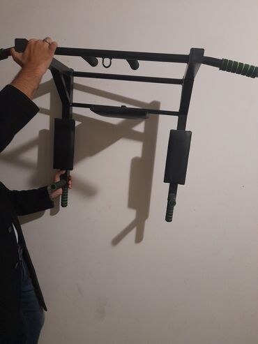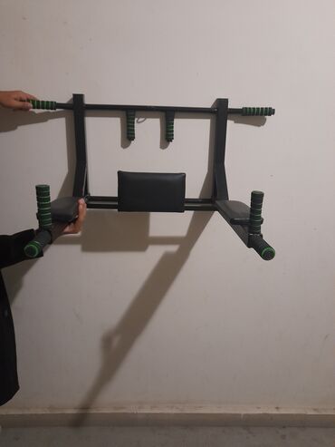 - Divara bərkidilmə üçün metal dayaqlı konstruksiya; aparat çevrilərək həm turnik, həm də dips stansiyası kimi istifadə oluna bilir