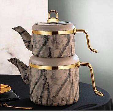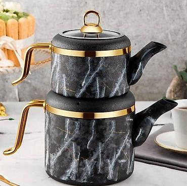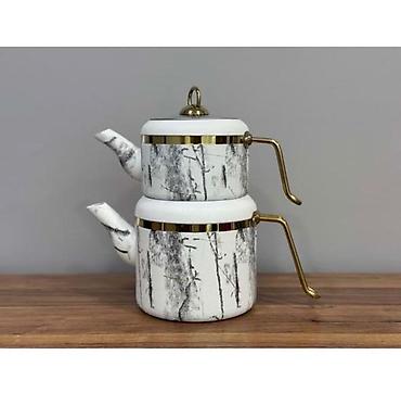 Mərmər naxışlı ikiqat çaydan dəsti.