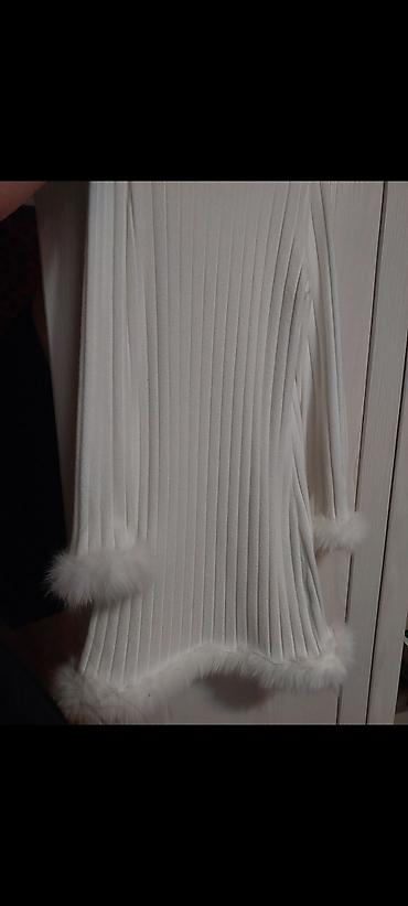 Uşaq üçün ağ rəngli trikotaj paltar - Ölçü: 12Y (təxminən 11–12 yaş) - Model: Uzunqol, dizə yaxın uzunluq - Parça: Yumşaq, kanallı (şaquli zolaqlı) trikotaj - Dizayn detalları: Ətək və qolların uc...