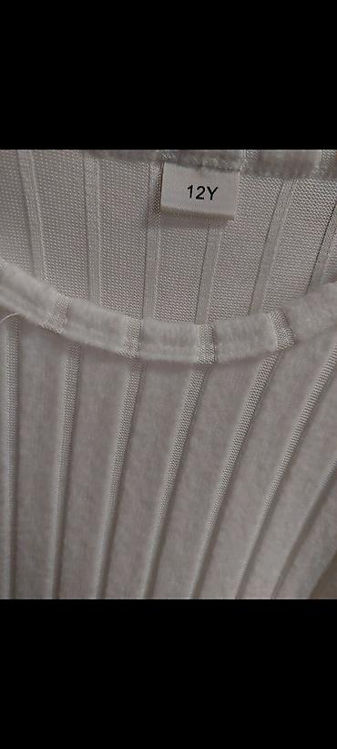 Uşaq üçün ağ rəngli trikotaj paltar - Ölçü: 12Y (təxminən 11–12 yaş) - Model: Uzunqol, dizə yaxın uzunluq - Parça: Yumşaq, kanallı (şaquli zolaqlı) trikotaj - Dizayn detalları: Ətək və qolların uc...Giriş•Qeydiyyat