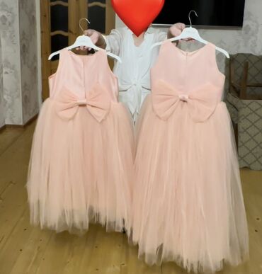 Uşaq üçün zərif ziyafət/libas paltarı - Rəng: pudra-çəhrayı - Üst hissə: parıltılı payetlərlə bəzədilmiş büst - Parça: çoxqatlı tull və atlas astar - Dizayn: şəffaf askılar, hər iki qolda iri tull...