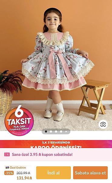 TƏZƏ. qizimin dogum gunu geyimini Turkiyeden 90 manata almisam. Ad gunune basqa geyim geyindirdik deye sadece cekilisde 10 deqliq geyinib. Evde bosuna qalmasin deye 50 manata vererem . Tem tezedir...