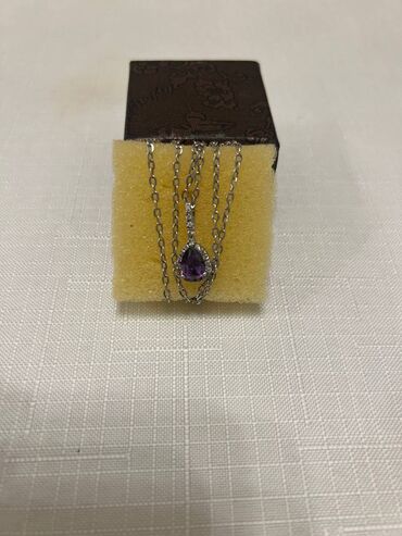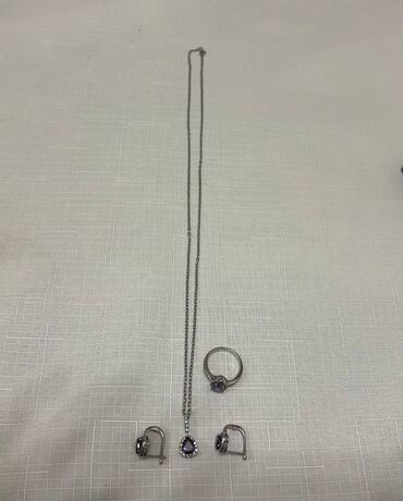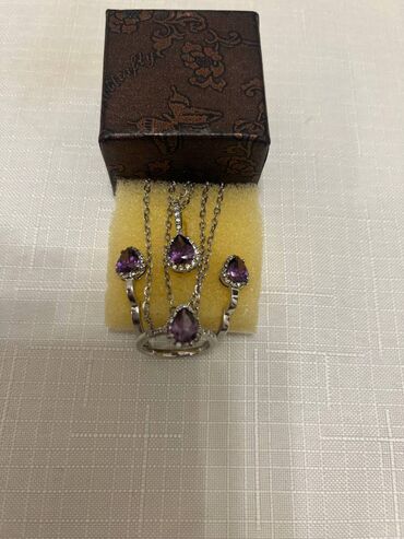 Qızıl zinət əşyaları dəsti - Üzük və sırğa komplekti: 585 prob, üzük 4 qram, sırğalar 6 qram. Üzük və sırğaların üzərində parlaq daşlardan çiçəkvari kompozisiya. - Boyunbağı: 750 prob, 6 qram. Z...