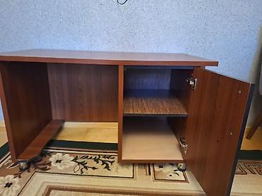 - Konstruksiya: sağda qapalı şkaf bölməsi, içəridə tənzimlənə bilən rəf; solda açıq bölmə (sistem bloku və ya əlavə saxlanma üçün).