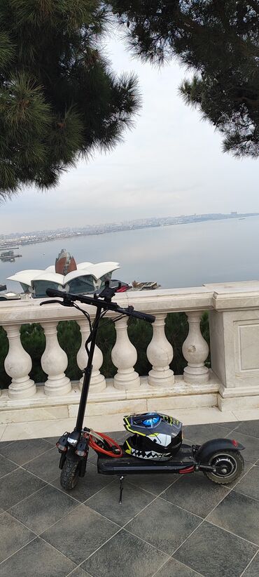 Elektrik skuter – qara rəng Xüsusiyyətlər: - Şəhər üçün kompakt və yığcam konstruksiya, qatlanan sükan sütunu - Elektron ön qaz pedalı və sağ əldən idarə olunan mexaniki disk arxa əyləc - Arxa tək...