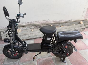 Tam Yeni! Tam Elektrik! Çox praktik və rahat! Motor: 350W Batareya: 48V20A (artırmaq imkanı var) Sürət: 40km/s qədər Yürüş: 35-40 km Ölçülər: 155*65*103cm Serviz xidmətləri mövcuddur!