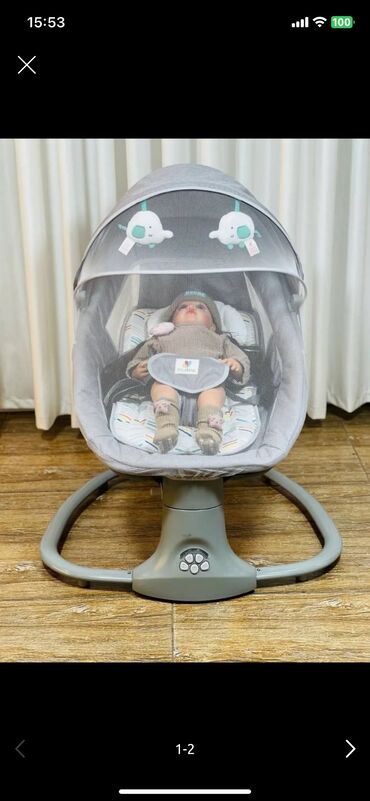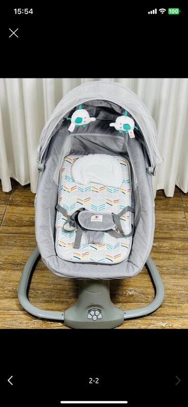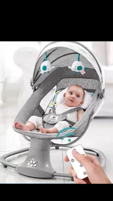 Elektrikli beşik/sallanma kreslosu – boz rəngdə, avtomatik yellənmə funksiyalı.