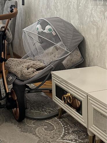 Uşaq arabası – 60 AZN - Model: beşik tipli, dərin lyulka ilə - Rəng: qara, qızılı çərçivə - Çərçivə: yüngül və möhkəm metal konstruksiya - Təkərlər: ön fırlanan, arxa iri təkərlər – hamar sürüş və...