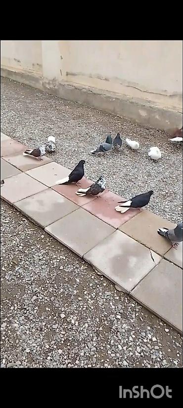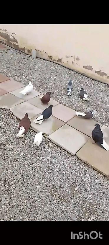 Salam 35 eded goyercindi kom 7 manat.tek tek 10 manat. Təsvir: - Həyətdə saxlanılan, bir qrup ev göyərçini. - Rənglər: ağ, qara, boz, qəhvəyi və ala (qarışıq naxışlı); quyruq və qanadlarda ağ-qar...