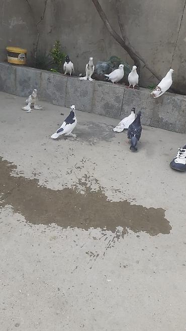 Ev göyərçinləri – müxtəlif rənglərdə və naxışlarda - Növ: ev/göyərçin (kolleksiya və ya çoxaltma üçün uyğundur) - Rənglər: ağ, ağ-boz ləkəli, tünd (qara/qəhvəyi tonlarda) - Say: şəkildə bir neçə b...