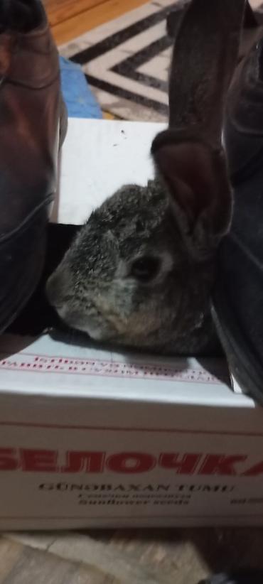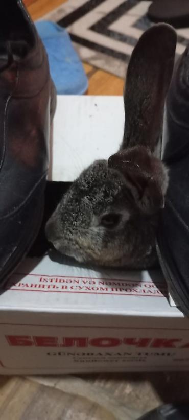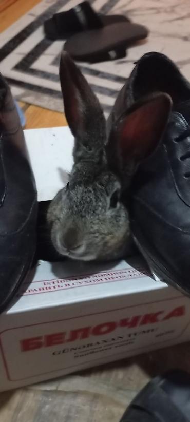Boz rəngli ev dovşanı - Növ: ev dovşanı (boz tüklü, dik qulaqlı) - Rəng və xarici görünüş: tünd-boz (çəltiyi rəngli) kürk, ağ çənə altı, iri dik qulaqlar, parlaq qara gözlər - Ölçü: kompakt bədən ...