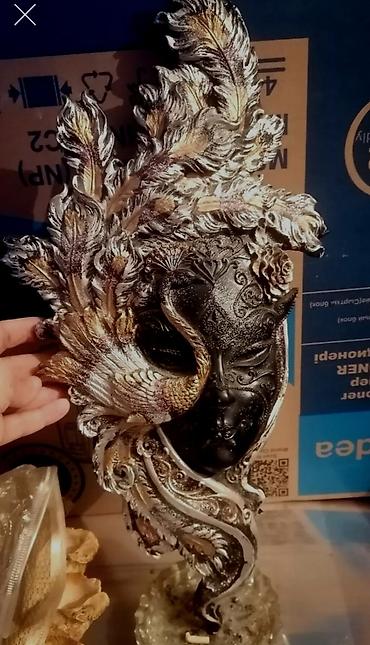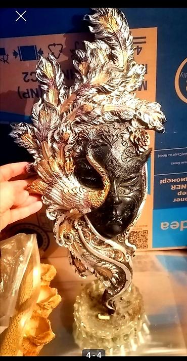 - Dizayn: Qara maska üzərində qızılı-gümüşü naxışlar, tük və çiçək motivləri; maskanı qucaqlayan quş fiquru (qızılı və inci-ağ çalarlar)