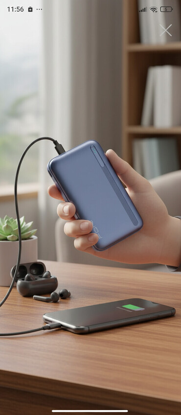 FONI daşınan enerji bloku (powerbank) - Korpus: kompakt və hamar dizaynlı, boz-mavi rəngdə. - Portlar: 2x USB-A çıxışı (rənglərlə işarələnmiş), 1x USB-C portu, 1x micro-USB giriş. - Sürətli enerji...