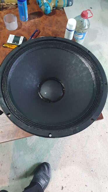 Böyük ölçülü dinamik (subwoofer tipli bass spiker) - Təxmini diametr: 15–18 düym (korpusda montaj üçün çoxlu bolt deşikləri var) - Ön tərəf: dərin relyefli kağız/kompozit membran, geniş yaylıq kən...
