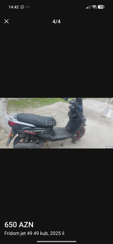 Freedom MX49 moped (Çox az istifadə olunub bazar dəyəri 1800 manatdır əlim yandida satılır) - Model: MX49 (tip: moped) - Rəng: qara - Mühərrik: 49 sm³ - Maksimal sürət: 50 km/saat - İstehsal ili: ...