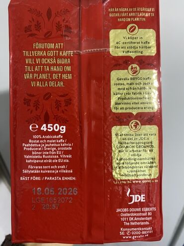 - Mənşə və istehsal: yüksək keyfiyyətli lobya, İsveçdə qovrulub və üyüdülüb