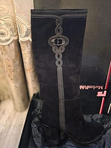 Giovanni Giusti qadın qara dəri çəkmələri. Bu zərif çəkmələr rahat geyimi təmin edən möhkəm çox hündür olmayan dabanlara malikdir. Dizaynı toqqa detalları ilə tamamlanıb, gündəlik və xüsusi günlər üçün uyğundur. Marino Rubini qadın qara zamşa çəkmələri. Bu zərif çəkmələr rahat geyimi təmin edən möhkəm hündür dabanlara malikdir. Dizaynı naxışlı detalları ilə tamamlanıb, gündəlik və xüsusi günlər üçün uyğundur.