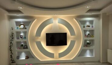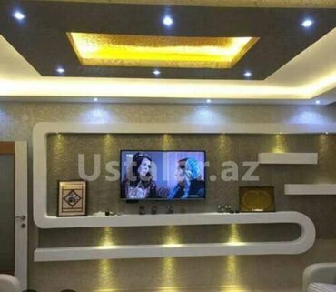 - Materiallar: metal karkas, nəmə davamlı gipsokarton, möhkəmləndirici profillər, keyfiyyətli şpaklyovka və boya sistemləri. Elektrik xəttlərinin gizli çəkilişi.
