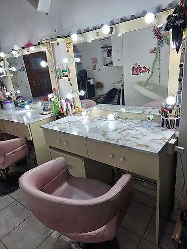 Gözəllik salonu üçün mebel dəsti Tərkib: - Saç yuma stolu: qara rəngli keramika kasa, qarışdırıcı/çuşka kranı, su giriş-çıxış hortumları hazır şəkildə. Yumşaq döşənmiş, erqonomik oturacaq və qol d...