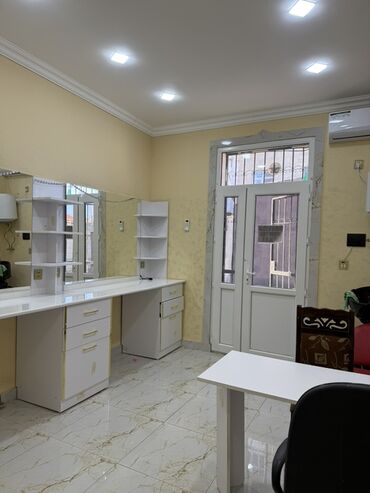Manikür stolunun yerləşdirilməsi üçün ayrıca ağ stol mövcuddur. Salon fəaliyyəti (bərbər, vizaj, manikür) üçün praktik planlama və rahat iş mühiti təmin edir.