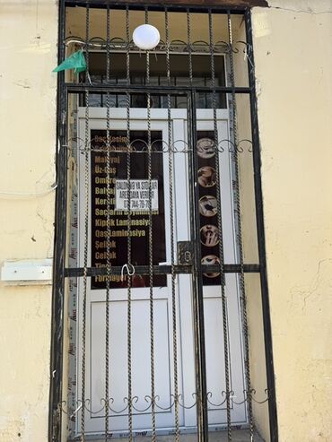 - Küçəyə çıxışı olan qapı, dəmir barmaqlıqlı giriş