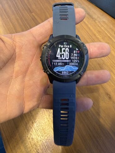 GPS idman ağıllı saatı – qara korpus, boz silikon kəmər. Garmin fenix 6x sapphir çox az işlənib heç bir cızıqı yoxdur 15/16 gün zaryatka saxlıyır