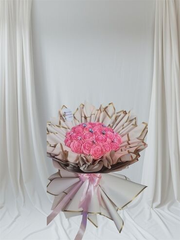 - Detallar: yüksək keyfiyyətli dekorativ materiallar, uyğun rəngli lentlər, bükülmə forması uzunmüddətli estetik görünüş saxlayır. “101 Gül buketi” yazısı olan model mövcuddur.