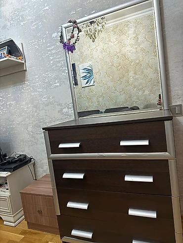 Aynalı komod/drezuar - Material: ağac naxışlı laminat (isti qəhvəyi tonlarda) - Üst hissədə böyük düzbucaqlı güzgü – gündəlik istifadə və dekor üçün rahat - 3 geniş çekmece: paltar, aksesuar və mə...