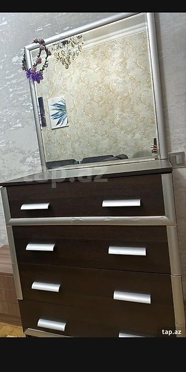 - Ölçü təxmini (fotoqrafiyaya əsasən): komod hündürlüyü orta, güzgü ilə birlikdə daha hündür; en geniş, dərinlik orta