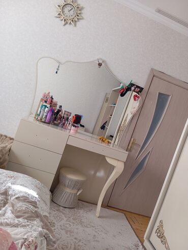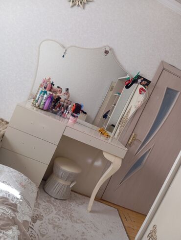 EndirimsizGeniş güzgülü makiyaj masası və pufik