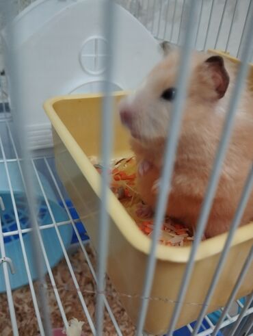 Hamster və tam dəst qəfəs - Geniş iki mərtəbəli metal qəfəs, mavi