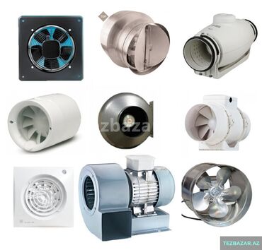 Havalandırma fanları və aksesuarları Məhsul təsviri: - Kanal və dairəvi tip mərkəzdənqaçma (radial) fanlar, inline boru fanları, kvadrat/korpuslu kanal fanları. - Fərqli ölçü və güclərdə: mətbəx, ...