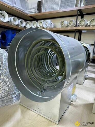 - Elektrikli kanal qızdırıcısı: dairəvi kanal daxilinə quraşdırılan, hava axınını isitmək üçün TEN-lərlə təchiz olunmuş, korpusda elektrik qoşulma qutusu.
