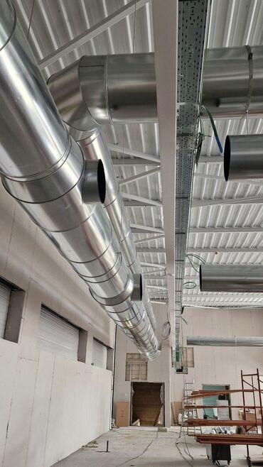 Havalandırma və havatəmizləmə sistemləri üçün avadanlıq və aksesuarlar - Spiral və düz hava kanalları: sinklənmiş poladdan, müxtəlif diametr və uzunluqlarda, birləşdirici fitinqlər (dirsəklər, muf...