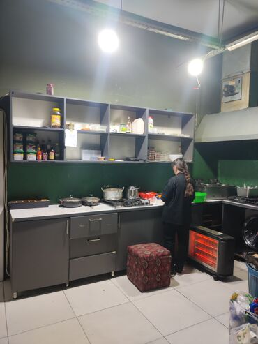 - Mətbəx: qaz plitəsi, bişirmə avadanlıqları, iri havalandırma/aspirasiya sistemi, açıq rəfli saxlama bölmələri, istilik qurğusu, iş masas(lar)ı.