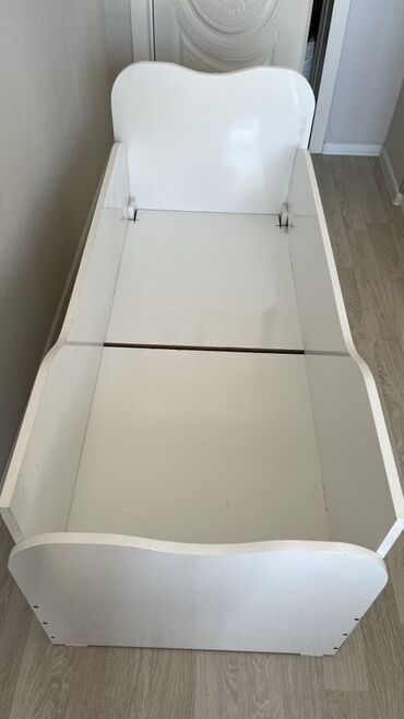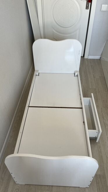 Matras hədiyyə..Ağ rəngli, taxtadan hazırlanmış uşaq yatağı. Yatağın ön tərəfində saxlama üçün bir çəkməcə var. Çəkməcənin tutacağı pəncə izi formasındadır. Yataq körpə otaqları üçün uyğundur.Kənarları çıxarılıb,taxıla bilir.7yaşa kimi uşaqlar rahatlıqla yata bilirlər.
