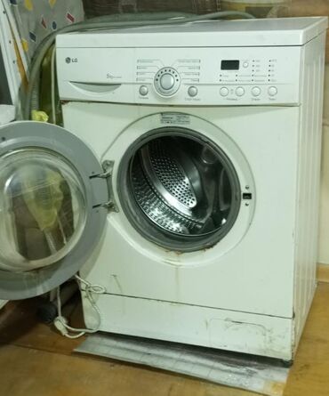 Əlavə olaraq şəkildə LG önyükləməli paltaryuyan maşın görünür: çoxproqramlı panel, 5 kq-a qədər yuma tutumu, digital göstərici və klassik ön lyuk.