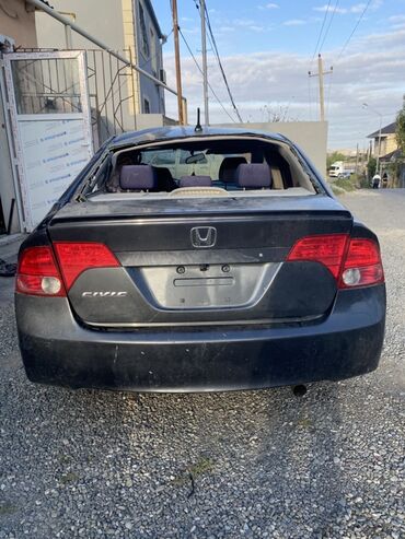 Ön hissəsi zədələnmiş və bəzi hissələri əskik olan boz rəngli Honda Civic sedan. Avtomobilin arxa hissəsi nisbətən yaxşı vəziyyətdə görünür, amma arxa şüşəsi sınıqdır. Təkərləri üzərindədir. Ehtiyat .hissələri və ya bərpa üçün istifadə oluna bilər